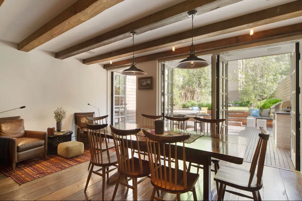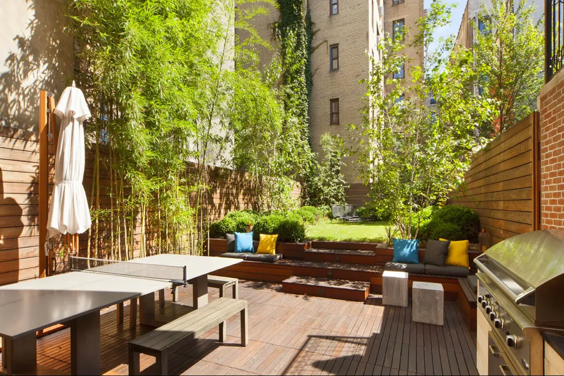 La propriété allie des détails d’origine avec une touche moderne. Parmi les caractéristiques notables, on retrouve des sols chauffants et un système high-tech pour la gestion à distance de l’éclairage et de la musique. La façade extérieure et le plancher en pin ont été conservés à l’état original. La maison comprend aussi une bibliothèque, une cave à vin et un grand jardin d’environ 100 mètres carrés (un luxe pour la localisation !).